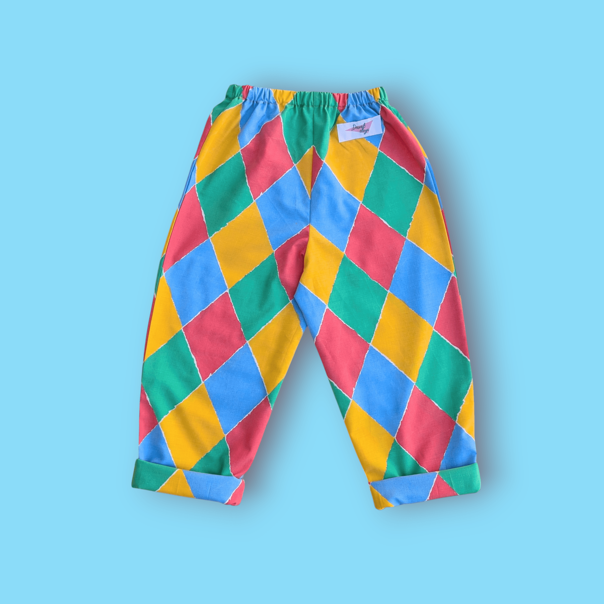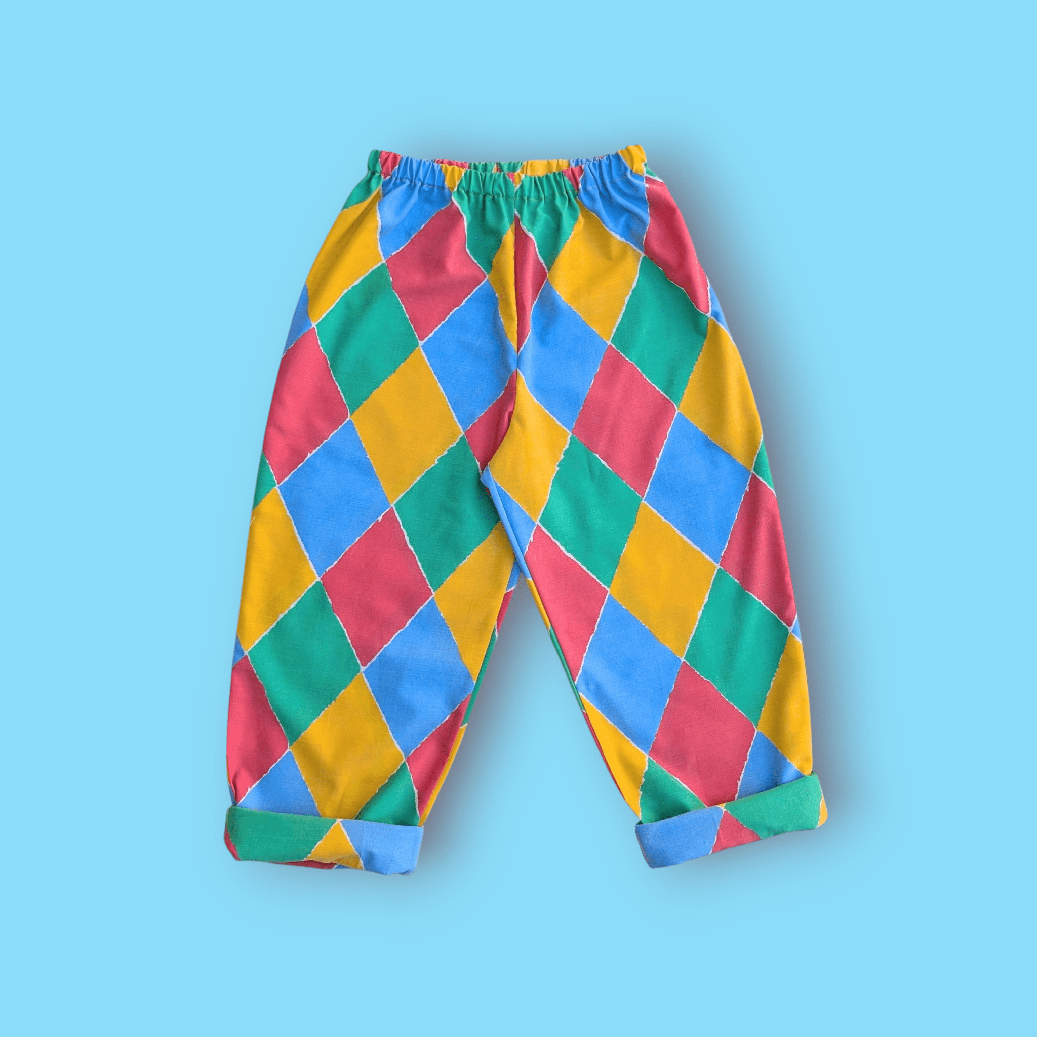 These trousers have a big turn up and an elasticated waist so plenty of room for growing kids!